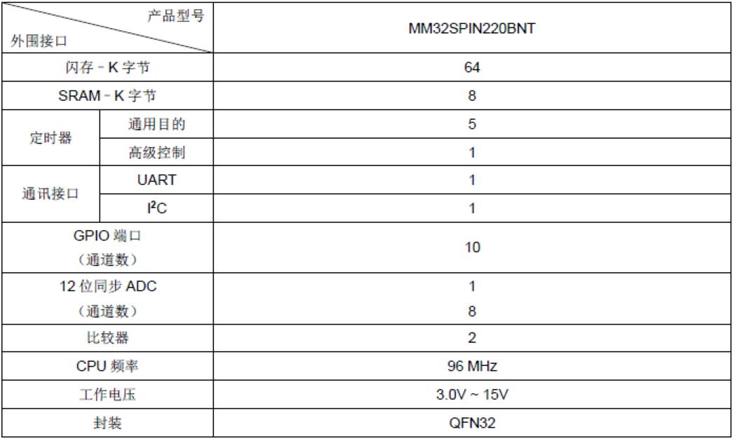 MM32SPIN220B產(chǎn)品提供QFN32封裝形式;下面給出了該系列產(chǎn)品中所有外設(shè)的基本介紹。