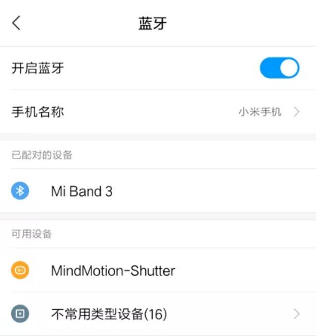 2. 選擇對(duì)應(yīng)名稱(MindMotion-Shutter)的藍(lán)牙設(shè)備并進(jìn)行配對(duì)。