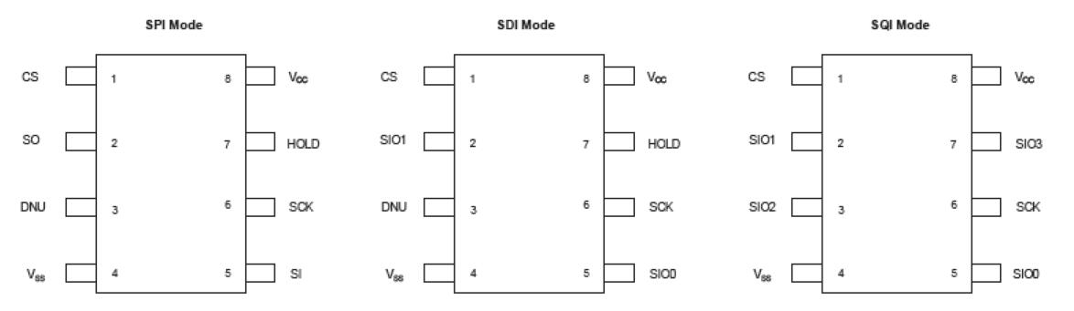 與兼容的主設備一起使用時,該設備還支持SDI(串行雙接口)和SQI(串行四接口)操作模式。要進入SDI模式,必須輸入ESDI命令(3Bh)。按照SDI操作模式的慣例,每個時鐘使用SIO0和SIO1引腳輸入兩位。位首先以MSB時鐘輸入。要進入SQI模式,必須輸入ESQI命令(38h)。對于SQI操作模式,每個時鐘輸入4位數(shù)據(jù),或者每個時鐘輸入1個半字節(jié)。半字節(jié)首先由MSB提供時鐘。
