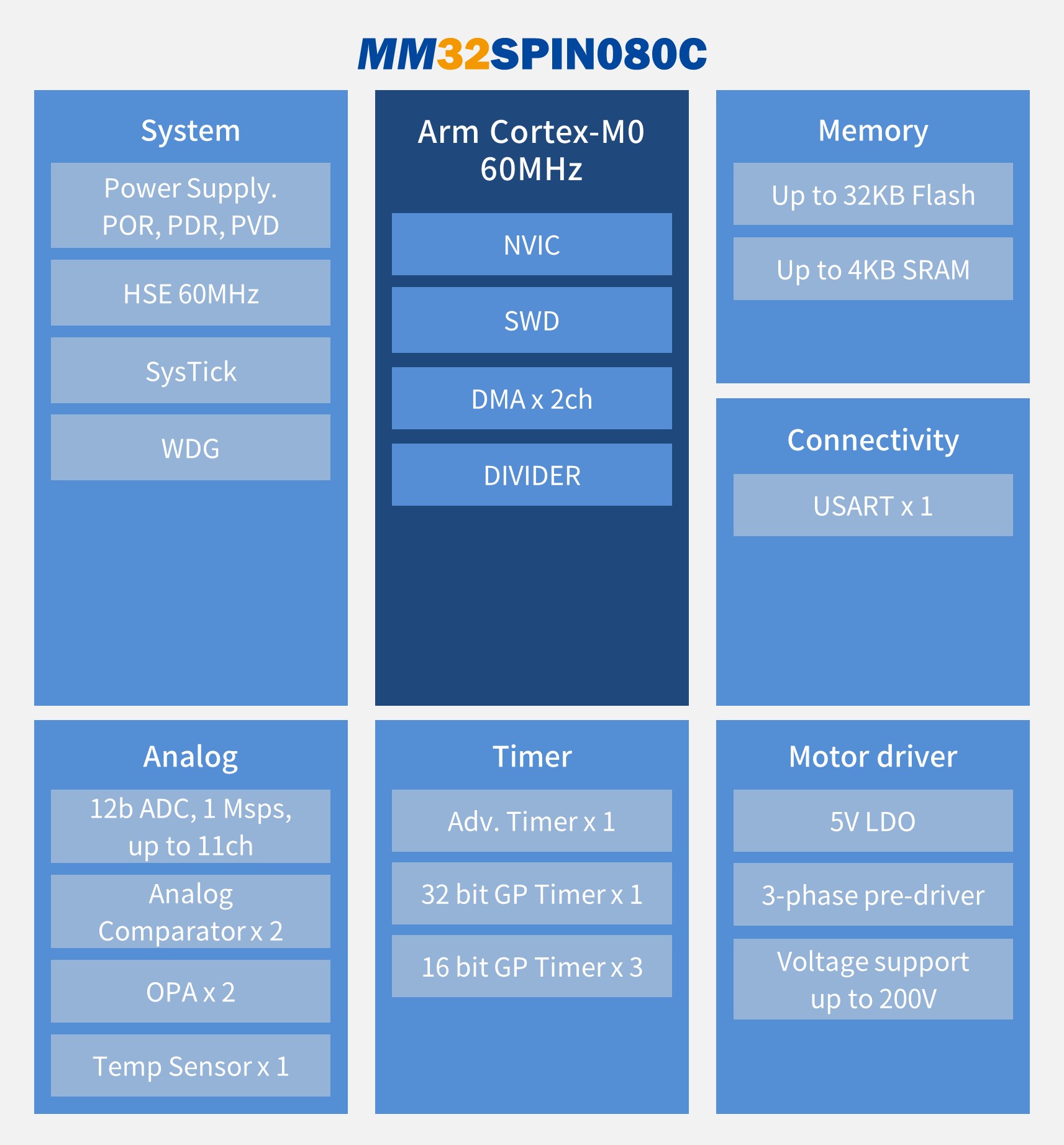 靈動(dòng)微高性能單電機(jī)控制SOC產(chǎn)品MM32SPIN080C