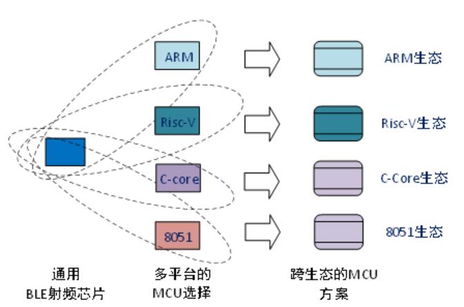 這樣,通過將通用ble射頻芯片和多樣化的微控制器芯片相結(jié)合,制造商可以快速組合多樣化和靈活的BLE單芯片或模塊化解決方案,以滿足不同的生態(tài)需求和市場需求。