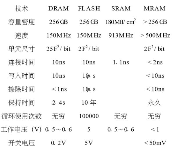 MRAM與現(xiàn)行各類(lèi)存儲(chǔ)器的比較