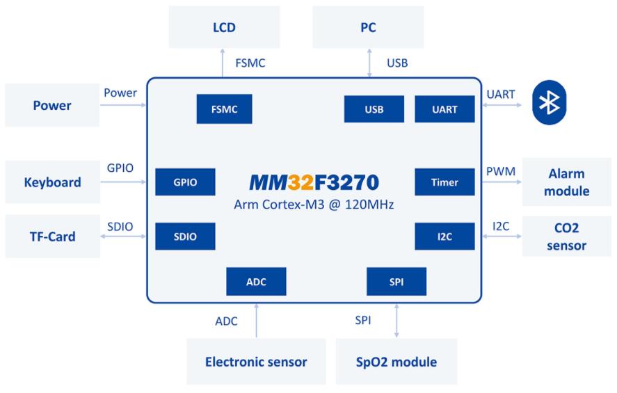 靈動微MM32F3270微控制器的監(jiān)護儀:
