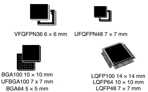 MM32F103C8T6產(chǎn)品提供 LQFP100、LQFP64、LQFP48、LQFP32 和 QFN32 共 5 種封裝形式;根據(jù)不同的封裝形式,器件中的外設(shè)配置不盡相同。