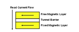 存儲位的置“0”狀態(tài)或置“1”狀態(tài)正是由自由層的極性來確定的。自由層極性和固定層極性一致時(shí)(指向相同方向),穿越MTJ棧層的阻抗很低(請參閱圖1)。自由層極性和固定層極性180度相反時(shí)(指向相反方向),穿越MTJ棧層的阻抗就很高(請參閱圖2)。由MTJ堆棧中的低阻抗和高阻抗來確定是否將位元讀為“0”或“1”。